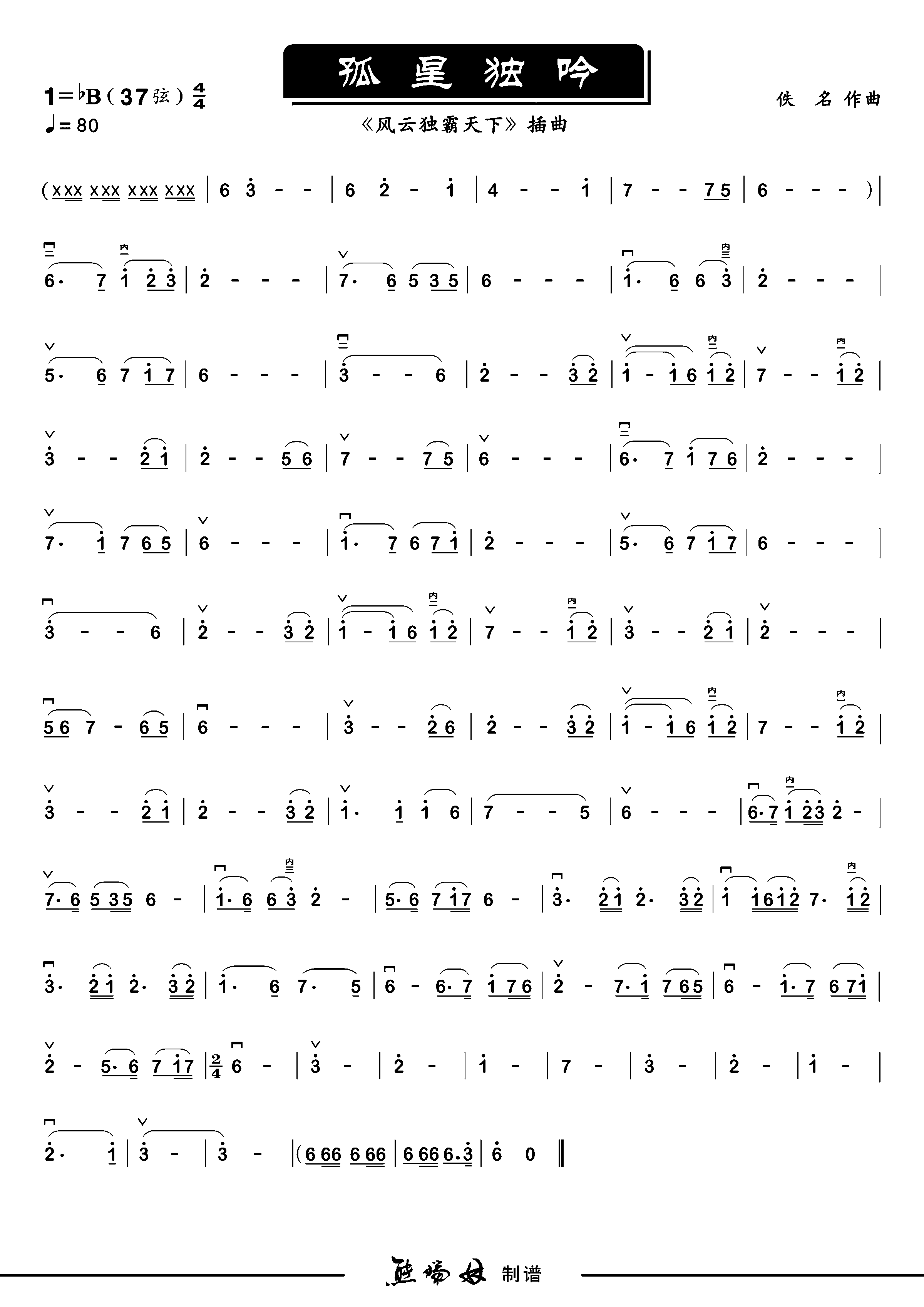 “孤星独吟”二胡、洞箫数字简谱