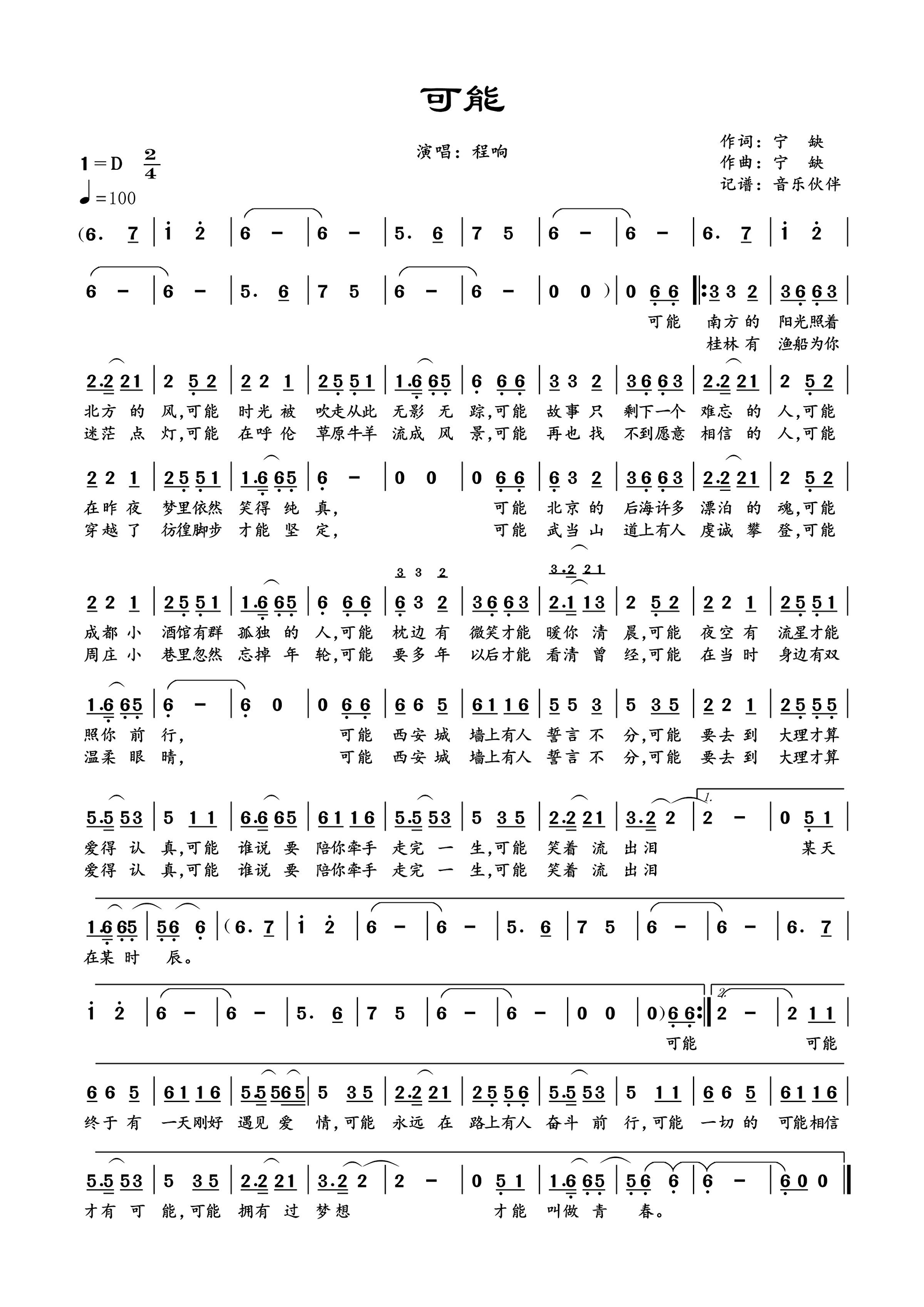 歌曲“可能”由宁缺作词、作曲,由曲比阿且编曲,由程响演唱