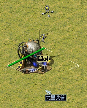 注:这里以尤里兵营为例,假设把 Foundation 改为 4x4、Height 改为 2、OccupyHeight 改为 10,下图是修改后的实况效果;可以看到 Foundation 和 Height 属性也会影响血条的绘制,上面的火箭飞行兵离得那么远还是被提示成了被遮挡的单位,这就是 OccupyHeight 属性的作用;而下面的火箭飞行兵位置在建筑正上方却没有提示被遮挡,如果想要让下面的那个火箭飞行兵也显示出被遮挡的效果,还需修改 AddOccupyX 属性,比如 AddOccupy1=1,1、AddOccupy2=2,2。