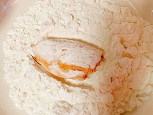 7 碗中放入适量玉米淀粉,将腌制好的鸡翅均匀的裹上