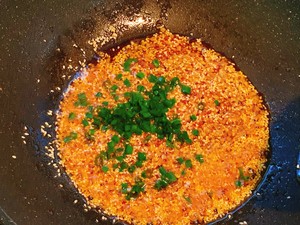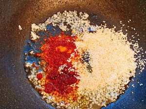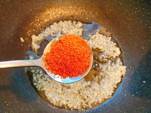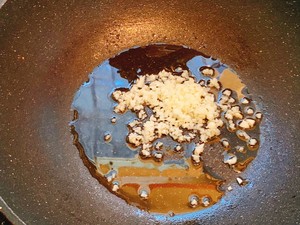 9 锅中放油,爆香蒜末,