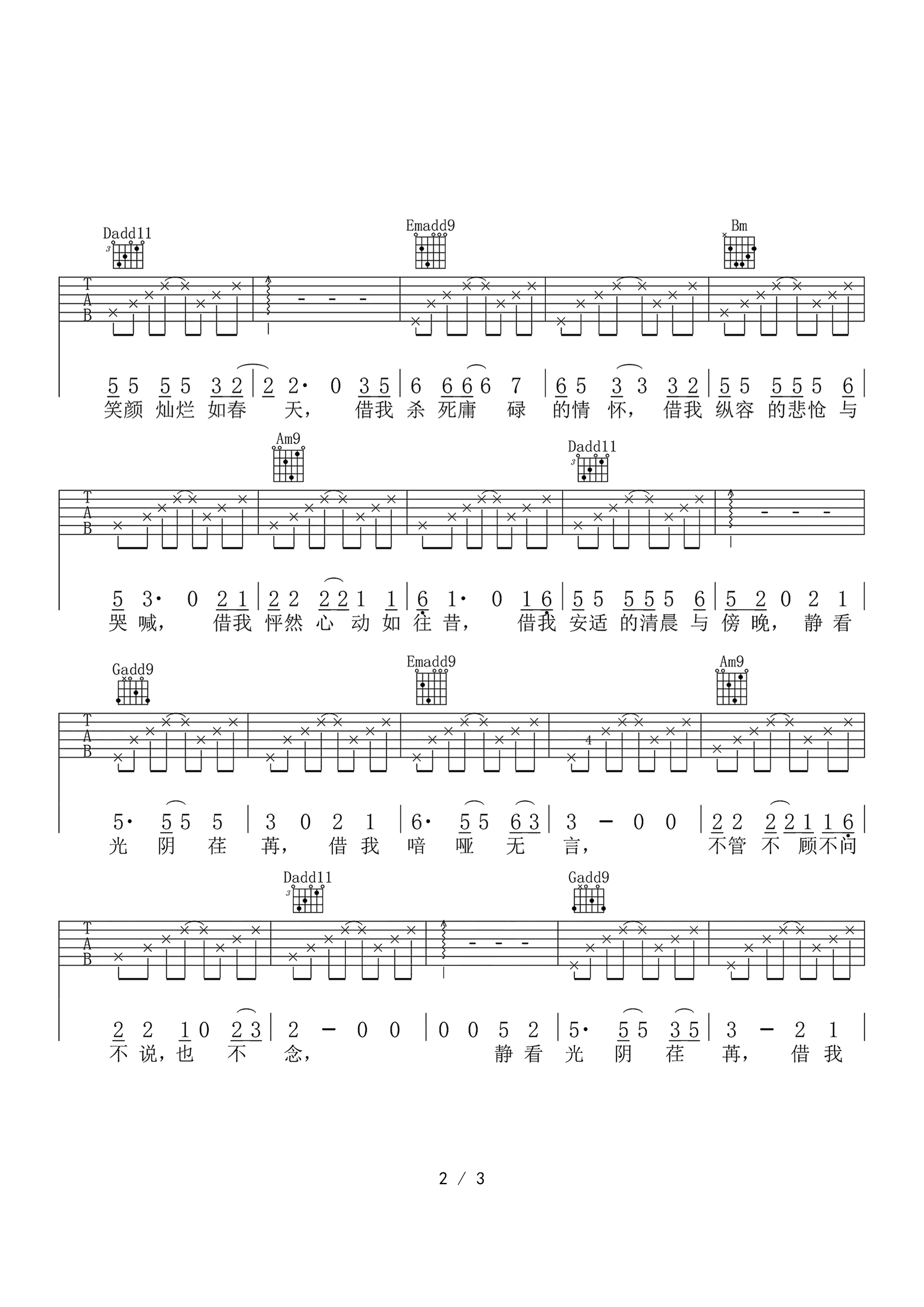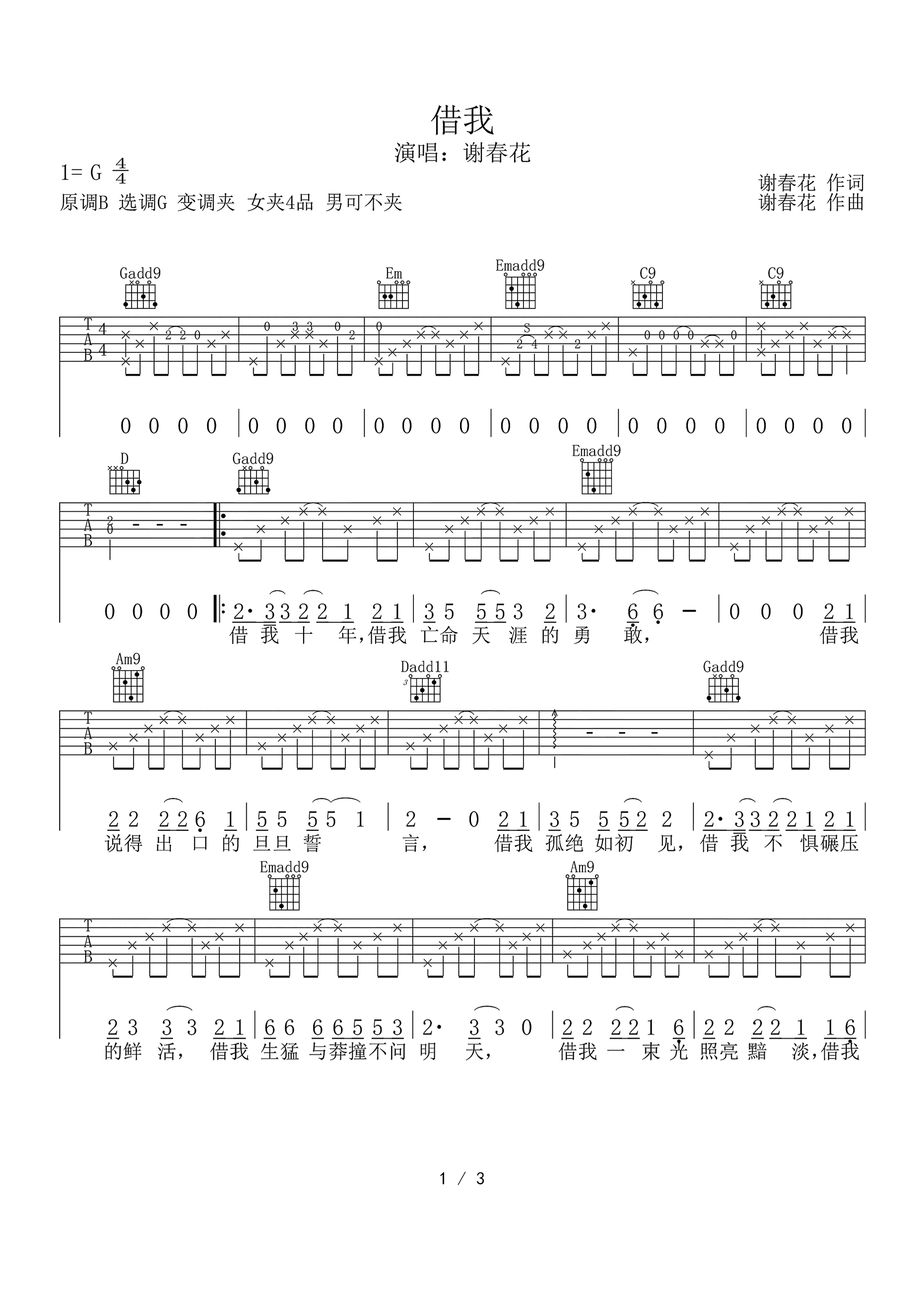 借我 谢春花 高清六线谱完整版
